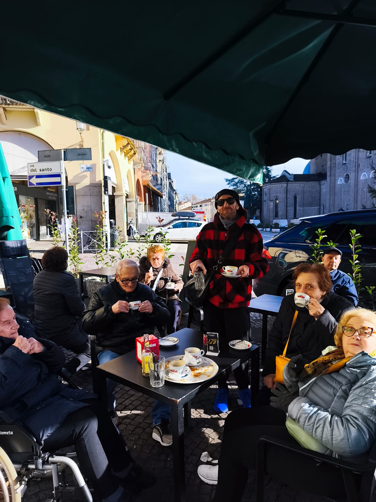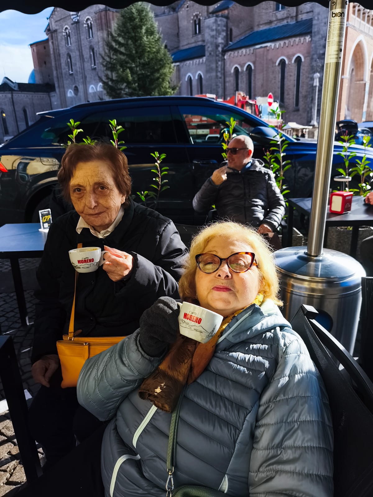Le visite hanno seguito un ritmo dolce e familiare: la benedizione in basilica, una passeggiata tra i portici storici e poi una pausa all’aperto per gustare un caffè e una brioche al sole. La fortuna di trovare due giornate soleggiate ha reso tutto ancora più piacevole, permettendo agli ospiti di godersi il calore di novembre seduti ai tavolini all’aperto.