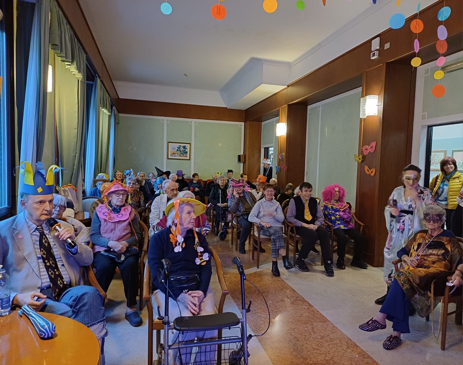 La prima festa è stata una sorpresa elegante: la compagnia teatrale dell’Auser Basso Isonzo ha portato al Piaggi le sue letture sceniche dedicate al Carnevale. Maschere, voci, gesti teatrali e un pubblico d’eccezione — gli ospiti del Piaggi — che ha risposto con attenzione, curiosità e il piacere di lasciarsi trasportare dalla narrazione. Un appuntamento che ha ricordato a tutti quanto il teatro sia uno strumento potente di emozione e connessione, a qualsiasi età.