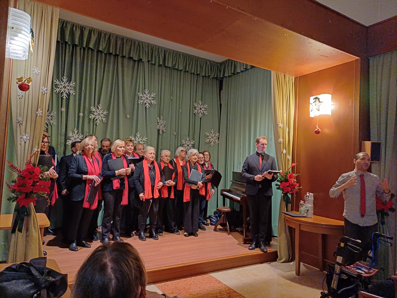 Al Pensionato Piaggi, il maestro Cervato ha dimostrato tutta la sua abilità non solo come direttore, ma anche come animatore culturale. Dopo aver eseguito un repertorio di brani natalizi e non solo, ha guidato gli ospiti in un momento di canto collettivo, spiegando con pazienza e allegria quando e come unirsi al coro. Il risultato è stato straordinario: voci diverse che si intrecciano, sorrisi, emozioni condivise.