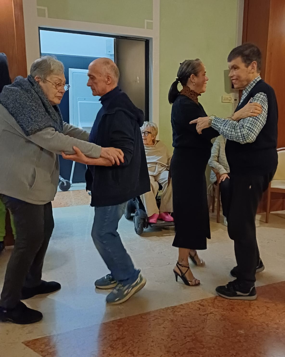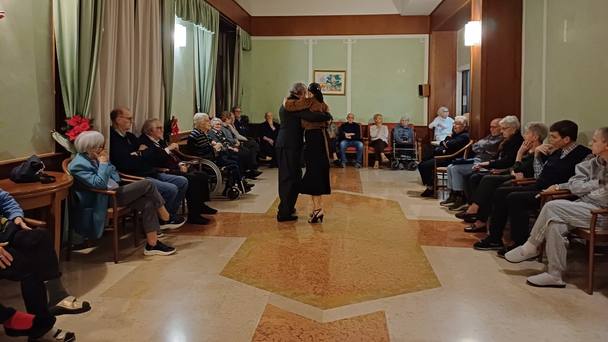 Antonellina ed Emiliano non sono ballerini qualunque: Campioni Europei 2021 per il tango de pista, primi nel Vals internazionale e nel Tango open, nel 2022 si sono classificati al 15° posto al Mundial de Tango di Buenos Aires, primi tra le coppie europee. Ma c’è un dettaglio che rende questo evento ancora più prezioso: Emiliano è il figlio di una nostra ospite, e ha voluto condividere con lei e tutti gli altri residenti la sua grande passione.