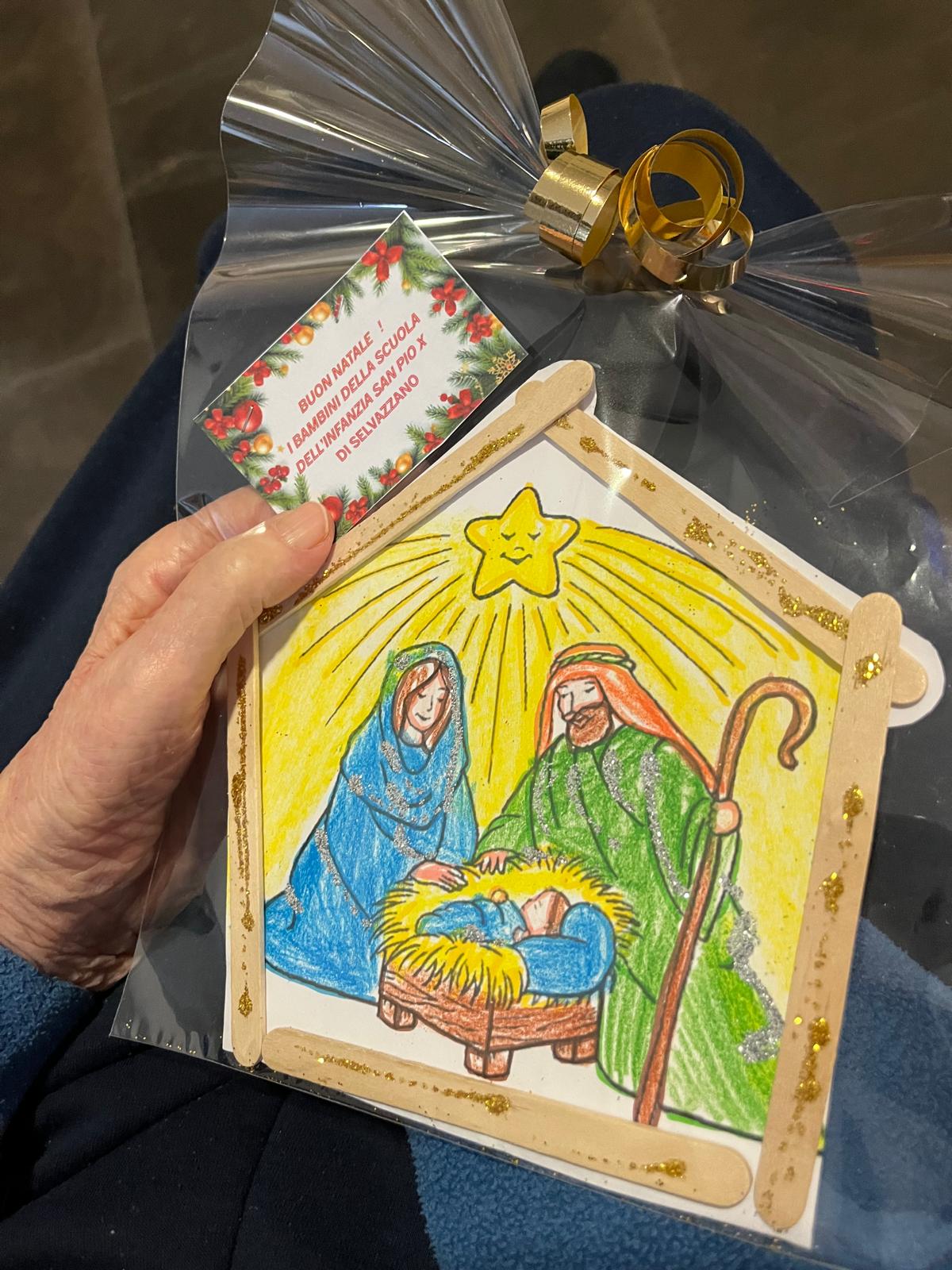Lunedì è stata la volta dei più piccini della Scuola dell’Infanzia San Pio X di Selvazzano Dentro, che da anni mantiene viva questa bella tradizione con visite a Natale e a Pasqua. Cinquanta bambini tra piccoli, medi e grandi hanno portato la loro energia contagiosa, regalando canzoni natalizie, poesie recitate in coro e lavoretti realizzati a mano, che al termine dell’esibizione hanno consegnato personalmente agli ospiti.