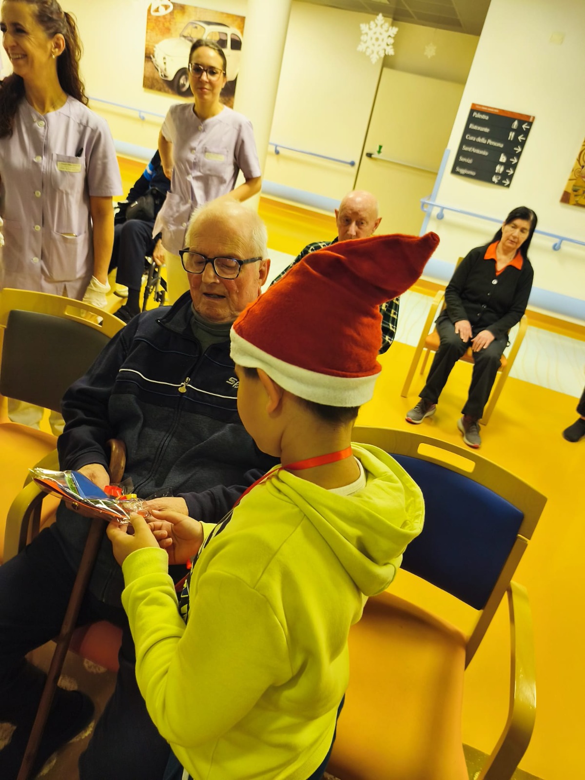 Ma la parte più bella è stata l’intervista improvvisata: i bambini avevano preparato domande sul Natale e le hanno rivolte agli anziani presenti. Ne è nato uno scambio prezioso, fatto di ricordi d’infanzia, tradizioni di famiglia e quella saggezza che solo chi ha vissuto tanti Natali può trasmettere.