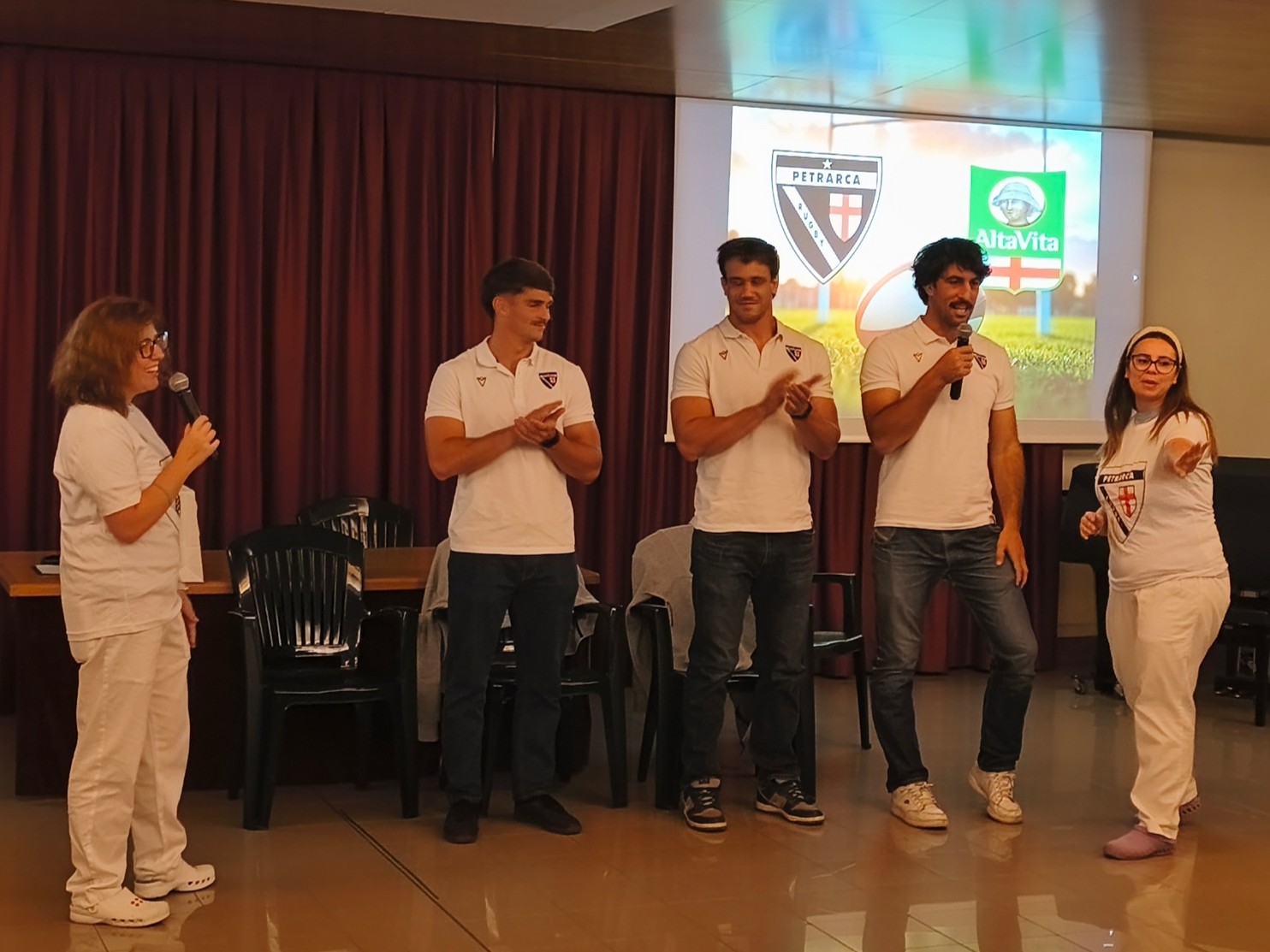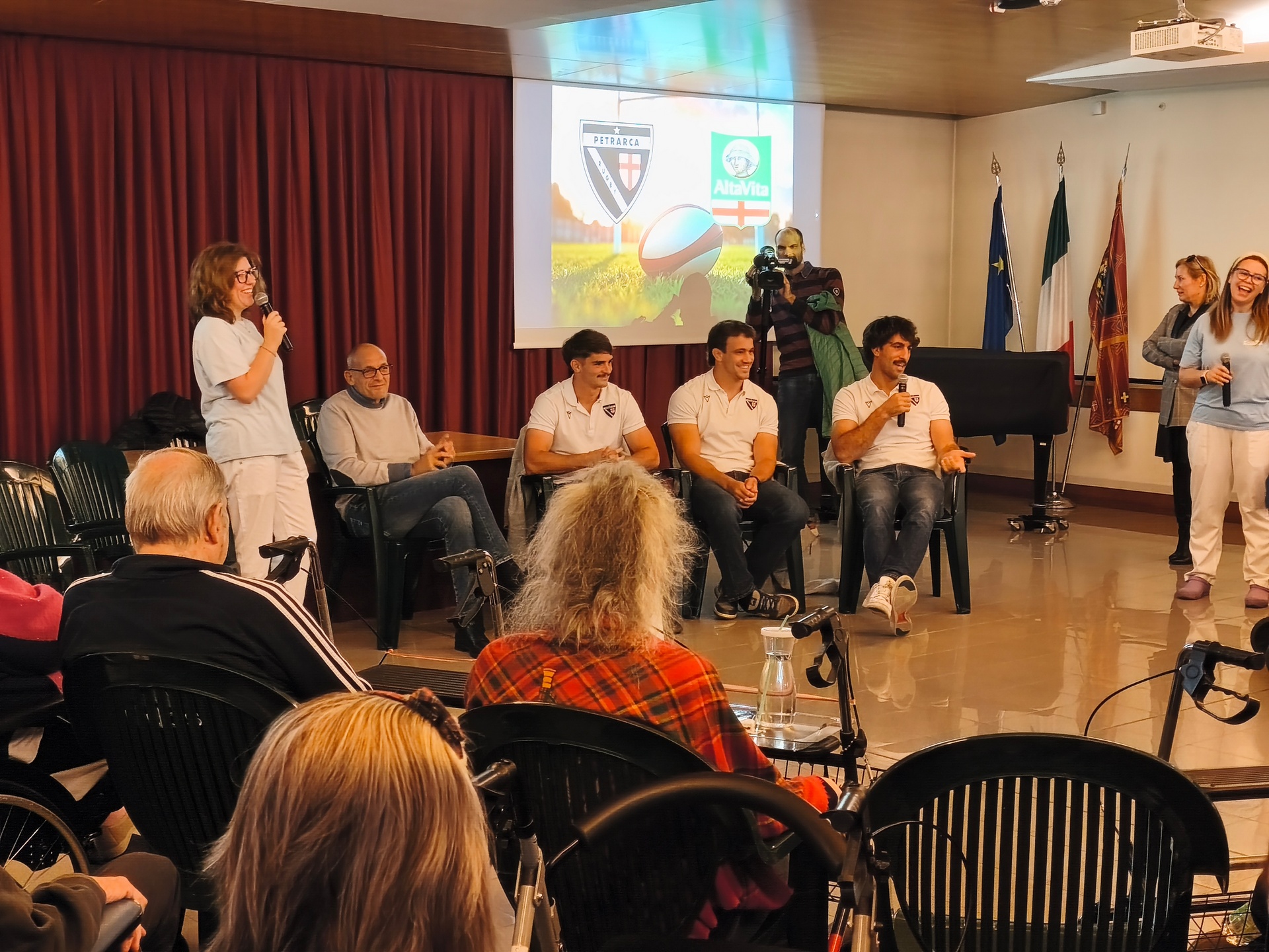 «I nostri ospiti hanno interagito tantissimo, sono protagonisti attivi che danno tanto», racconta con soddisfazione Adelaide Biondaro, Direttore Generale di AltaVita-IRA. «È stato un momento di festa, di convivialità, e siamo molto felici di avere ospitato i giocatori del Petrarca Rugby, che sono stati disponibilissimi a raccontare la loro esperienza e rispondere a tutte le domande che i nostri residenti hanno rivolto loro».